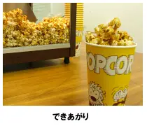 キャラメルポップコーンなら、ボタン一つ押せば、後は機械が勝手に作ってくれます。また作りおきもできます。手軽です。