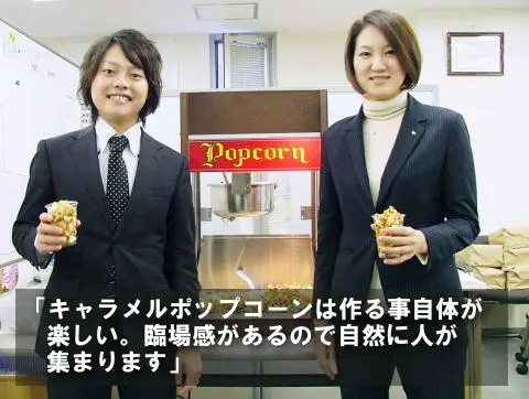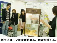 そして、「安価に簡単にできて、お客を集められるものはないか」と尋ねられた際に、それならばご好評いただいているものに、キャラメルポップコーンレンタルがあります、と言って紹介しています。